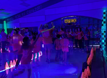 This is the big event day! The Apex team will set up, parents can come volunteer and watch/cheer as the kids check their laces and get ready to run! Apex knows how to party with an MC who will play music and pump up the kids to complete their laps while dancing and smiling the whole hour long!